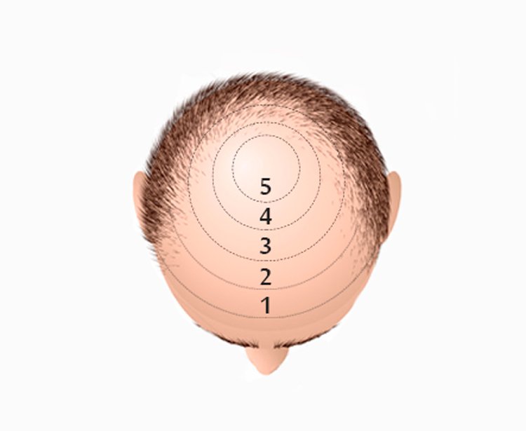 - Zona receptora o área con alopecia: se localiza en la región superior, coronilla y en la parte superior de la frente, aunque también pueden ser áreas receptoras otras zonas, como cejas o barba.