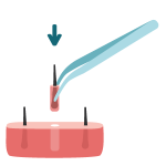 El injerto o colocación de los folículos pilosos en la zona receptora se realiza de la misma manera en las dos técnicas descritas cuya principal diferencia radica en la extracción de los folículos.